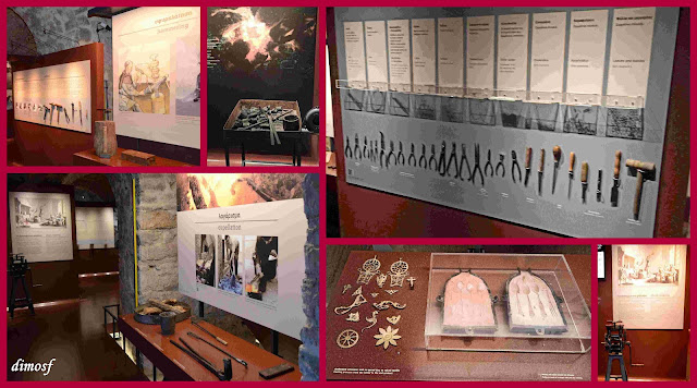 Το πρώτο κομμάτι της μόνιμης έκθεσης αφορά την ιστορία και την τεχνολογία της αργυροτεχνίας. Βλέπουμε διάφορα εργαλεία και τη χρήση τους,